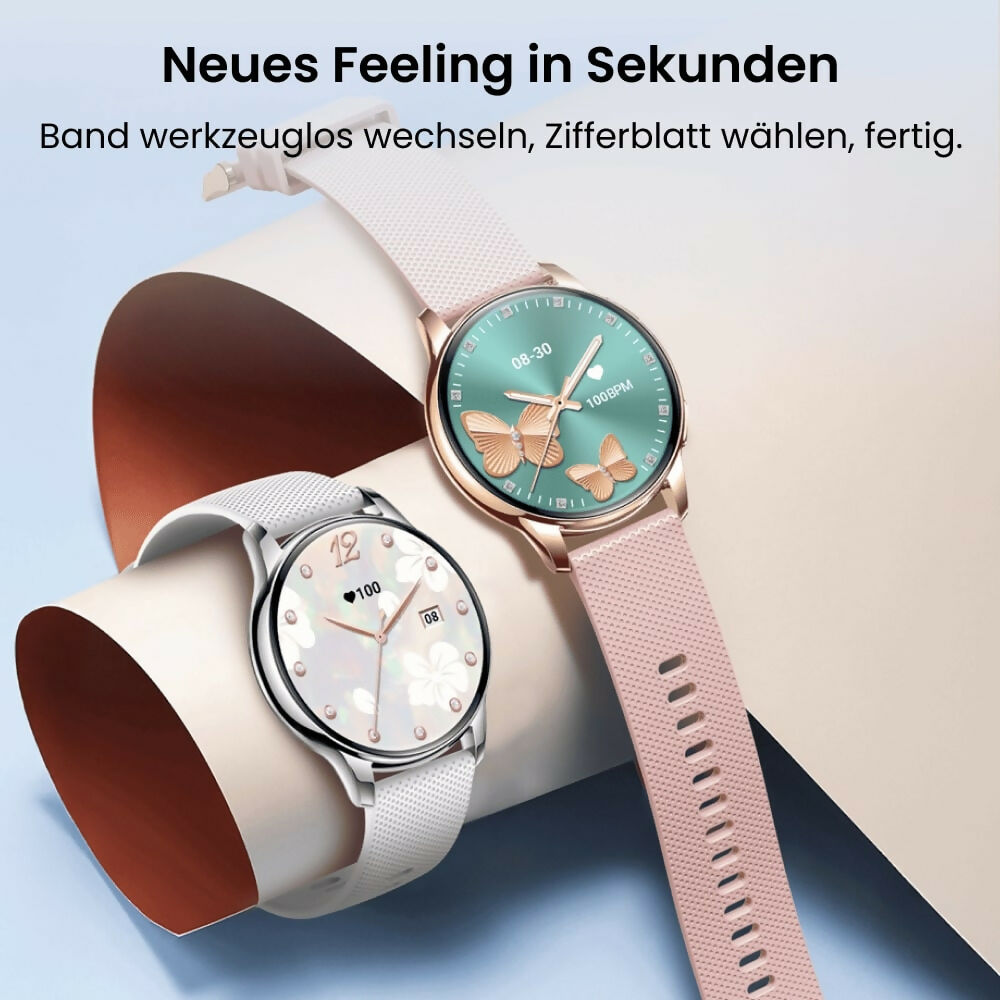 | Funktionen | Herzfrequenz, Blutdruck*, SpO₂, Schlaftracking, Schritt/Kalorien, Stoppuhr, Wecker, Musiksteuerung, Kameratrigger, Find-my-Phone |